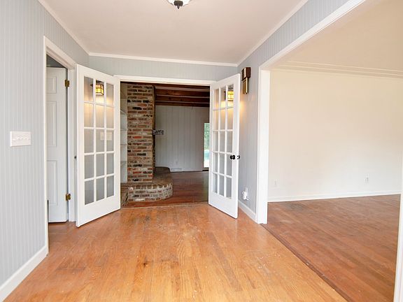 Soolid, one-story brick home on a huge lot with an in-ground pool, separate workshop and stunning trees and mature landscaping. Wood flooring throughout and an updated kitchen, plus updated bathrooms are all features you will love and wait until you see the brick fireplace and beamed ceilings in the living room. A circular drive connects to a side driveway leading to a workshop/one-car garage and a 2-car garage attached to the home. The large front porch welcomes you into the foyer with double french doors and leads into a great formal living room and dining room. The kitchen has cabinets, pantry space, desk space, wine refrigerator, built-in appliances and more!! The laundry room area has its own cabinets and folding countertop, plus and upstairs media room/office.On the opposite side of the home, three bedrooms share a hall with a remodeled full bathroom and lots of storage closets. The owner's suite at the rear of the home has its own outside access overlooking the pool area and features 2 closets plus a great remodeled bathroom. There is so much potential in this home, but some areas will need your attention to make this the perfect home. Home is priced for needed repairs and updates. This is the perfect home to bring your ideas from HGTV to reality!! Buyer to verify anything deemed important. Age is approximation. New garage roof in 2023, HVAC replaced in 2020, windows replaced in 2012, and roof less than 10 years old.