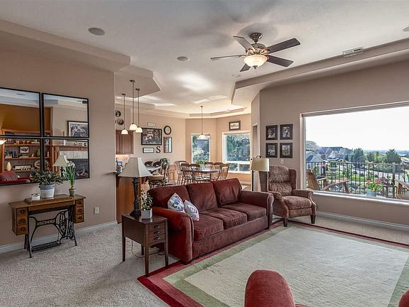 Phenomenal Custom homes with panoramic views of the Lower Valley and Wine Country, this 5 bed home features luxury inside and out! You are greeted by coffered ceilings, Brazilian cherry hardwood flooring and beautiful tile inlay flooring. The great room boasts a fireplace with Built-ins , large picture windows to enjoy the view, you are then lead to a spacious covered deck overlooking the back yard and the vistas beyond. You can even see Mount Adams . From the great room one can seamlessly flow into the large dining nook with bay windows which captures the beauty outside. The spacious kitchen hosts a breakfast bar, Corian counters, gas cook-top and full tile back-splash. Located on the main level, the master suite has a recessed ceilings, master bath with heated tile flooring and spacious walk-in shower, and walk-in closet with built-ins and a private solarium with hot tub to enjoy the sweeping views! On the lower level enjoy a large family room and enjoy family time in the theater theater room, includes projector and equipment Separate exercise room with unique water resistant cork flooring For projects, use the finished shop area and access the outside with the over-sized man door. Outside amenities include a large manicured back yard, plenty of room for play or even a pool. Call today to set up a showing and make this YOUR home.