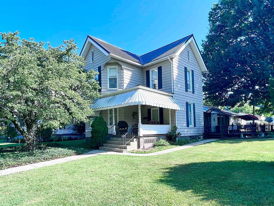 Check out this charming 2 story home with detached garage and alley access in Ironton! This home has great character As you walk into a large foyer with beautiful woodwork and a homey feel. The first floor features are a large Eat-in kitchen, nice utility room with washer and dryer adjacent to the kitchen, and two large living rooms with the front living room having a gas fireplace with beautiful title work and the second living room having a half bath. Upstairs this home can be used as a 4 bedroom or 3 bedroom with a nursery/office/study or craft room. Enjoy your outdoor living abilities with the front porch, back porch with deck and extra lot with lots of shade. Property also has off street parking from alley.
