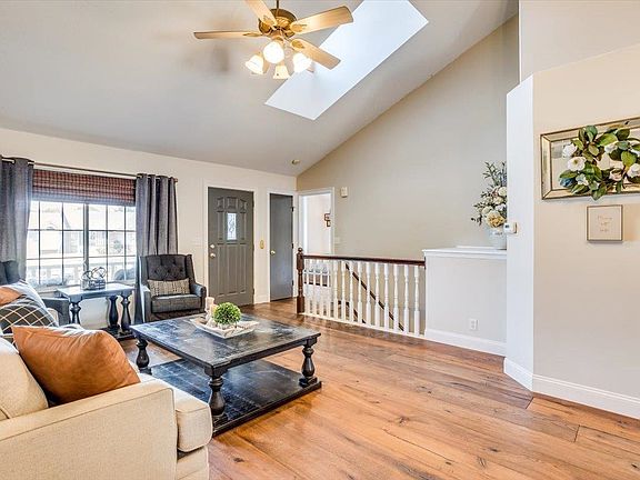 Great Ranch with a park for your backyard! Welcoming covered front porch, walks into gorgeous wood floors throughout the Living room and Formal Dining Room. Hearth Kitchen has new Quartz countertops, back splash and painted cabinets. Walk out to an entertaining deck and fenced yard. Split bedroom plan with 3 bedrooms up. Owner's Suite has a completely remodeled Bathroom with a Spacious Shower with new tile and a relaxing tub, Quartz countertops, duals sinks and a make up area. New carpet in the walk in closet. Same designer carpet leads you downstairs to the Large Family room with bar, 2 more bedrooms and another full bathroom! Extra deep Garage!