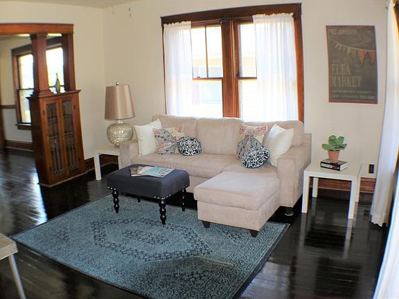 Super Cute Bungalow that looks straight out of the Colorado Mountains! The house has been freshly painted both inside and out with a deep dark blue/grey trim, while the inside is light and bright. You will love the original hardwood floors that have just been sanded and refinished as well as the beautiful wood built in's. The Central Heating and Air Conditioner was recently installed and the roof is less than ten years old. The kitchen has beautiful ''like new cabinets and there's a full basement and great back yard!