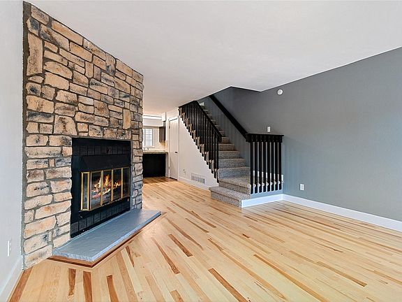 An excellent opportunity to own! This 2 bed/2bath townhome is open and bright and shows true pride of ownership with gleaming hardwood floors, new carpet, new windows, fresh paint, new light fixtures and a new AC and furnace! The main floor features a cozy family room, open kitchen with island and separate dining area as well as a half bath and small fenced yard perfect for your pet or a private BBQ. The upper level features 2 large bedrooms, a full bath and stackable washer and dryer. The entire upper level features new carpet. This is as good as it gets at this price! Across from the pool and green belt, close to restaurants and shopping and easy access to the highway and transit. Why pay rent when you can enjoy the benefits of home ownership? Reserved parking, all appliances and washer/dryer included.