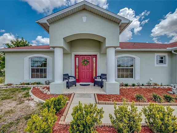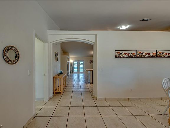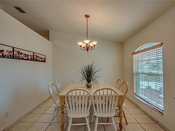 Welcome home to this 4 bedroom spacious home in the heart of Cape Coral! You will enter and immediately notice the lovely view of the large heated pool through the french doors ahead of you. There is a dining room to your right as you enter (could also be a den or office) and a private 4th bedroom to your left. The kitchen is great for entertaining with an island facing your expansive great room with vaulted ceilings. There are two additional guest rooms and a guest bath on one side of the home with your split floor plan the true master suite faces the beautiful pool and garden area. There is tile throughout this well thought out floor plan. Over sized pool(17x32) is a heated saltwater pool, backyard is fenced with mature fruit trees galore! Solar AC and windows replaced in 2014(low electric bill!) easy to use accordion style shutters, appliances less than a year old! AHS home warranty offered with sale. City assessments are paid in FULL! Make an appointment to view today!