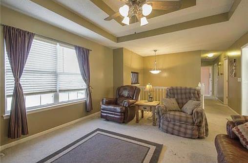 Great home in a great location! New 50 year roof w/ transferrable warranty! New paint in living room & hall bath. New stainless steel dishwasher and microwave in kitchen that is open with plenty of cabinets and counter space with vaulted ceilings and hardwood floors. Home features a nice brick fireplace in the living room with double coffered ceilings. Master BR has two closets, 3rd BR features nice loft w/ window and the downstairs Rec Room walks out to concrete patio and fenced backyard.