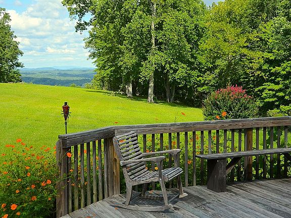 Seven bedroom, 3 & 1/2 bath Lodge with wrap around porches to take in the phenomenal views of Hanging Rock State Park and the Appalachian Mountains. Game room, loft, custom bar, heart pine walls and floors, huge master suite, stone fireplace and wood stove as well as stone fire pit, 5 acre manicured lawn. This property has been featured in 14 national magazines and multiple smaller publications. Across the lawn is a one bedroom mum in law suite. Additional, Large workshop and 2 storage barns .