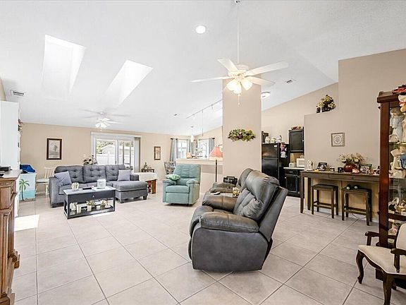 Great neighborhood, corner lot, and completely move in ready! Offering an open floor plan with vaulted ceilings, skylights, and tile floors throughout the living areas. Huge bedrooms all with walk in closets, with the master having a recently updated walk in shower. Meticulously maintained with a 2024 roof and skylights, 2016 AC, 2024 water heater, updated double pane windows and sliders, new hurricane rated garage door, screened-in back porch with insulated panels, and a spacious backyard that is completely fenced in.