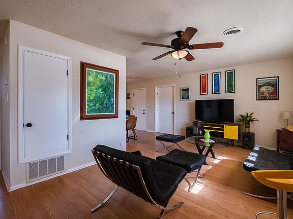 Nestled in a highly desirable neighborhood in Downtown Albuquerque located only minutes from the zoo entrance, Kit Carson Park, Tingley Beach, The Bosque, Triangle Dog Park and Rio Grande Pool. This updated home looks nothing like the before pictures and the care that was put into this home is evident! Featuring an open concept floor plan and HUGE backyard with covered outdoor living space make this home perfect for entertaining any occasion. The backyard has exceptional space for adding your own touch to the property, and having a storage building AND backyard access are great added bonuses!