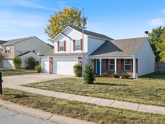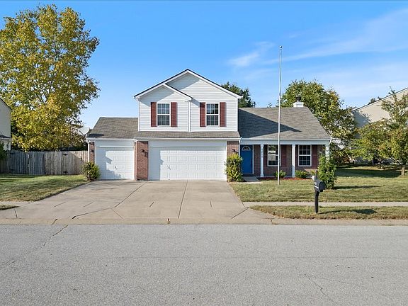 Welcome to this desirable 3 bedroom 2.5 bath move-in-ready home in Brownsburg! This gem features a rare finished three-car garage with an extended driveway, plus a spacious backyard-making it a true find. The home is enhanced by a 3-foot bump-out, creating a more open and inviting atmosphere. The vaulted great room, highlighted by a charming brick fireplace, flows seamlessly into the remodeled kitchen with dining area, perfect for family gatherings and daily living. Both the owner's suite and the second bedroom come with upgraded walk-in closets for added convenience. Enjoy your fully fenced backyard, complete with a deck and storage barn. Fresh paint and new carpet throughout provide a clean slate for you to make it your own. Plus, appliances are included! Take advantage of the fantastic HOA amenities, including a swimming pool, tennis court, and playground. Don't miss this wonderful opportunity!