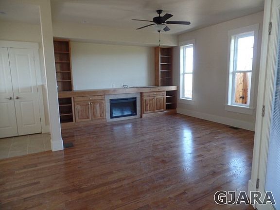 RECENTLY COMPLETED RANCHER TOWNHOME IN 55+ COMMUNITY IN FRUITA. UPGRADED WITH HARDWOOD FLOORING IN LIVING AND DINING ROOM, CERAMIC TILE IN ENTRY, KITCHEN, BATHS AND LAUNDRY, CARPET IN BEDROOMS. BUILT IN ENTERTAINMENT CENTER WITH ELECTRIC FIREPLACE, CABINETS, SHELVING AND APPROX. 36 WIDE SCREEN TV. LARGE COVERED PATIO OFF LIVING ROOM WITH DIRT AREA FOR PET AND PRIVATELY FENCED. DINING ROOM OVERLOOKS FRONT ENTRY, HAS EATING BAR OVERLOOKING KITCHEN. KITCHEN WITH AMPLE CABINETS AND COUNTERS HAS STAINLESS STEEL APPLIANCES AND UPGRADED COUNTERTOPS. MASTER BATH HAS WALK-IN CLOSET, DOUBLE VANITIES, WALK-IN SHOWER WITH SIT DOWN MARBLE SEAT, AND SEPARATE LINEN CLOSET. ALL INFORMATION IS SUBJECT TO CHANGE/ERROR, BUYER TO VERIFY ALL INFORMATION. OTHER AMENITIES INCLUDE CLUB HOUSE WITH BANQUET ROOM, LIBRARY/POOL TABLE ROOM, LOUNGE AREA, KITCHEN, TWO EXERCISE ROOMS, PATIO WITH BARBEQUE GRILLS.