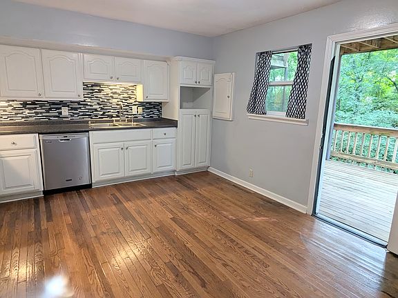 It has a spacious living room with a wood fireplace. The eat-in kitchen opens to a covered back deck perfect for late-night talks or weekend brunch. The rear upstairs bedroom features a private uncovered balcony shaded by mature trees.