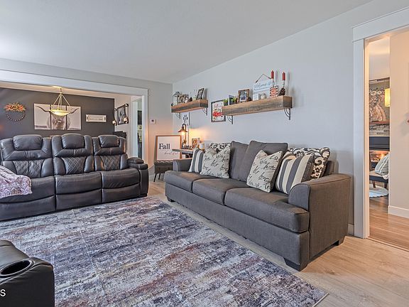 This spacious home offers 4 bedrooms (1 non-conforming) and 3 bathrooms, with the convenience of main floor laundry and a large entryway that welcomes you in style. You'll find a formal dining area, a casual dining space with a cozy gas fireplace, and a beautifully refreshed kitchen featuring modern light gray cabinetry, newer stainless-steel appliances, and abundance of counter space ideal for gatherings and entertaining.