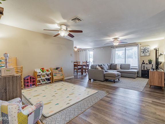 Charming 3/2 bath home in the heart of the East Valley~.NO HOA~ updated in the right places. Appliances will stay with the right offer! Close to 101 and 60. Well kept, beautiful landscaping .with space leftover. Perfect starter home or investment property or for someone looking to downsize into a low maintenance home with excellent features. Gazebo style patio cover added to backyard. Great room has designated space for dining, lounging and playing. Very well kept.