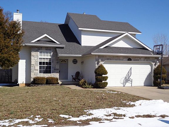 1215 West McGuffey offers four bedrooms and 2 baths in a contemporary styled story and 1/2 home. Great features like hand-scraped hardwood floors, gas fireplace, soaring ceilings, balcony loft area, wall niches, plant ledges and more. In the last 5 years the shingles have been replaced, main bathroom was remodeled with heated tile floors, tile tub/shower, fixtures and a newer kitchen sink, disposal and interior paint too! This home has a very trendy feel that you will love. You will appreciate the low maintenance exterior, fenced yard, large deck with built-in seating and a gorgeous view of open farm land from the back yard! On top of everything the Seller is providing a home warranty. Located close to Ozark North Elementary, convenient to retail and an easy commute to Springfield.