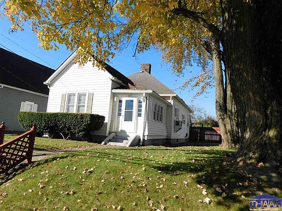 Charming small-town living brings this 3 bedroom 1.5 bath low maintenance, well cared for home on the outskirts of town to the market. Enjoy the covered front and back porches, living room, dining room, nice size kitchen with appliances. Very clean and dry basement for extra storage space. Outside the backyard is partially fenced, shed and 1 car garage with carport. This home is move in ready so give your favorite realtor a call today and take a look.