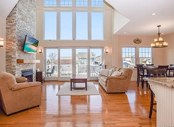 Stafford Twp.- Beach Haven West- Perfectly Appointed Waterfront Home nestled in Sought after Beach Haven West Location * Custom Built in 2014, this Magnificent Waterfront Home will Surpass Your Expectations * Welcomed by Curb Appeal Galore and Greeted w/Incredible Views from the Moment You Enter, this Contemporary Floor Plan offers 5 Bedrooms * 2.5 Tastefully Tiled Bathrooms and Kohler Fixtures * Open Floor Plan w/Designated Living Areas offers a Spacious Layout w/High Vaulted Ceilings Paired with Floor to Ceiling Windows Framing Picture-Perfect Water Views * Let Your Inner Chef Soar in this Beautifully Designed Kitchen featuring Wellborn Soft Close Cabinets, Bordeaux River Granite Countertops, Travertine Backsplash w/a Detailed Mosaic Inlay, Chefs Grade Stainless Steel Appliances and Huge Center Island overlooking the Main Living Area * Curl Up Alongside the Cozy Floor to Ceiling Stacked Stone Gas Fireplace while Watching the Sunset over the Lagoon from Your Living Room * Surround
