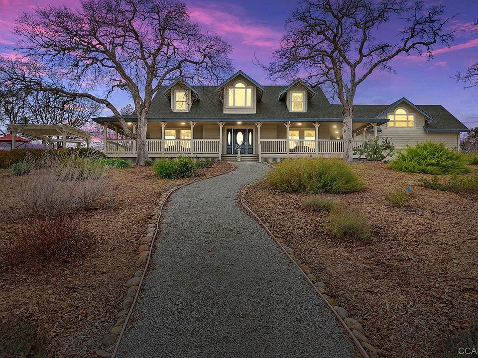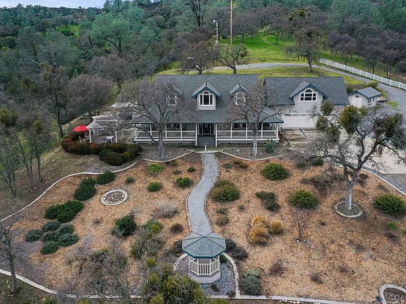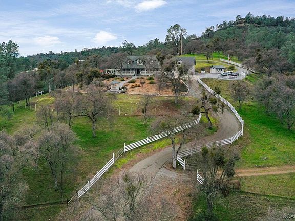 Over 25 acre gated estate 3,663 sq', 3 bed, 2-1/2 bath, study, gameroom & 3 car garage. Free fiber optic broadband. Conveniently located just 1.5 miles to town & minutes drive to 3 lakes (Pardee, Lake New Hogan, & Camanche). The home sits on a hill w/ panoramic Sierra Mountain views. The gourmet kitchen features a B/I fridge, B/I micro, a European Brand D/W, large island w/ wine rack & warming drawer. Coffered ceilings, arched doors, crown molding, heavy baseboards & window seating. Central heat/air, recessed lighting, high efficiency water softener, & central vacuum. The master bedroom is located on the main floor & the bathroom features double sinks, jetted tub, separate shower, & a large walk-in closet. Outdoors, porches on 3 sides of the house; 12 x 16 shed; large parking area; landscaped w/ low maintenance plants; BBQ, refrigerator, pergola, fountain & spa, a bass pond, 6 stall barn w/ 2 tack rooms & a chute/squeeze box. 5 acre zoning.