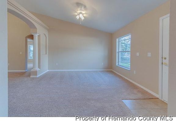 Tucked away in the quiet peaceful area of the Royal Highlands in Weeki Wachee yet convenient to all amenities you'll find this spacious 4 bedroom home, located on a 1/2 acre parcel. Built in 2007 this beauty features over 2,000 sqft of living space. Freshly painted inside and out, all brand new appliances, new carpeting, ceiling fans..this home is move-in ready. Once you enter, the living room greats you to the right and the separate dining room to the left. The archway with columns off the living room lead you to the family room, kitchen and breakfast nook...creating an appealing open floor plan.