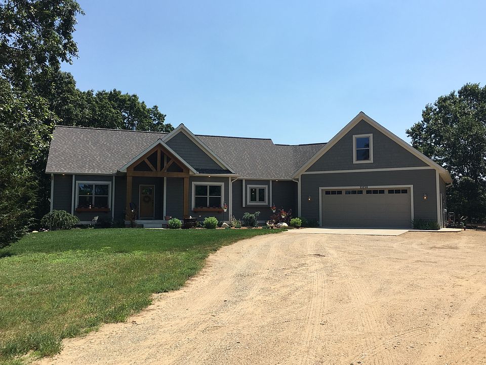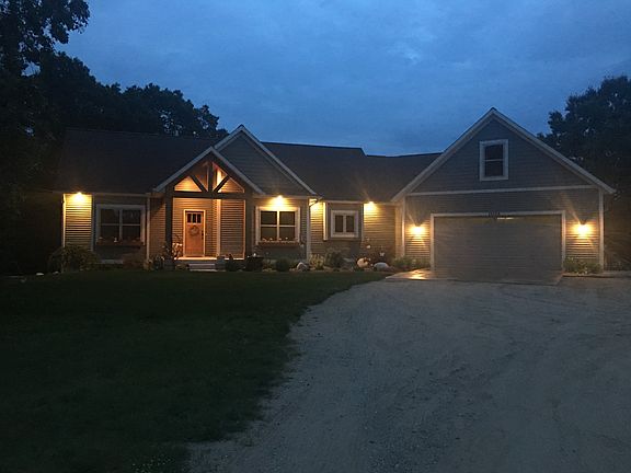 Look no further!!! This custom built home sits on over 7.48 acres and is situated over three hundred feet off the road surrounded by many mature trees. This home has an open concept with vaulted ceilings. The trim and slow close cabinetry are custom built with notty alder. The kitchen contains a walk in pantry with a large island facing the dinning area and covered porch. The family room boasted floor to ceiling windows and a stone fireplace with custom mantel and built ins. The master bedroom also located on the main floor has a walk in closet, jetted tub, and dual sinks. You will also find a second bedroom, full bath, and large mud room with built in lockers and adjacent large closet located on the main floor. The laundry room has a built in ironing board, wash sink, and large folding counter. This home has a large bedroom located above the 28x30 garage with built in closet, and mini split heating and cooling system. The walkout basement is studded and plumbed for two bedrooms, a full bath, family room, and kitchenette.