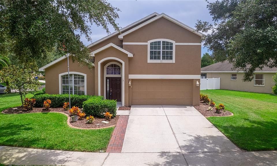 Welcome to this spacious 4-bedroom, 2.5-bathroom home, plus a huge bonus room and a 2-car garage, offering 2,871 square feet of living space. Located on a corner lot in the desirable Colony Lakes community, the property features mature landscaping and lush green grass. As you enter, you'll find a bright and airy living room with cathedral ceilings, chair rail, and new LVP flooring. A spacious coat closet and a transom window above the entry door enhance the welcoming atmosphere. The beautiful kitchen boasts 42" cabinets, granite countertops, stainless steel appliances, a tile backsplash, and a center island with a breakfast bar. Ample storage is provided by a wall of cabinets on the opposite side of the kitchen. The kitchen opens to the family room, which also features cathedral ceilings and a slider leading to the screened and covered lanai. The backyard is enclosed with 6-foot privacy fencing, perfect for enjoying outdoor living. The primary suite includes an impressive walk-in closet with custom built-ins, and the primary bathroom is exceptionally large, featuring a new walk-in shower and double vanity. The first floor also includes a guest half-bathroom and a large laundry room. Upstairs, an open staircase leads to an incredible bonus room—a versatile space limited only by your imagination. The second floor also houses three additional bedrooms and a large second bathroom. This home has been completely updated with new LVP flooring, fresh paint, modern bathrooms, fixtures, and more. With a low HOA fee of $80 per month and no CDD, you’ll enjoy tremendous value. The community also features a pool, providing a great place to meet your neighbors and enjoy the Florida summers.
