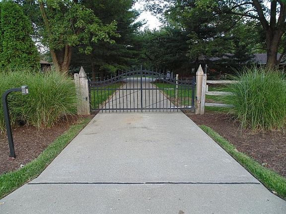 Beautiful 3 bedroom brick ranch nestled between pine trees for ultimate privacy.Iron gate for security and enormous 3 car garage with lots of storage. Updated kitchen and baths with granite, warm hickory hardwood floors. Parklike setting. Must See.