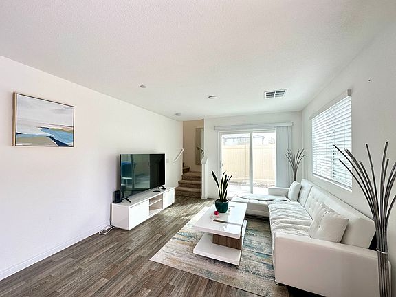 Modern 3 bed, 2 bath fully furnished townhouse featuring sleek, contemporary decor throughout. Enjoy an open-concept layout with a stylish living area and a dining space perfect for entertaining. The kitchen boasts granite countertops, stainless steel appliances, and ample cabinetry. Each bedroom is tastefully furnished for comfort and functionality. Bathrooms are updated with modern fixtures. Additional highlights include in-unit laundry, private parking, and an EV charger for electric vehicles. Ideal for those seeking convenience, comfort, and a modern lifestyle. PRICE IS THE SAME FURNISHED OR UNURNISHED.