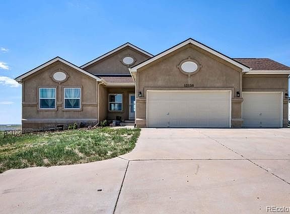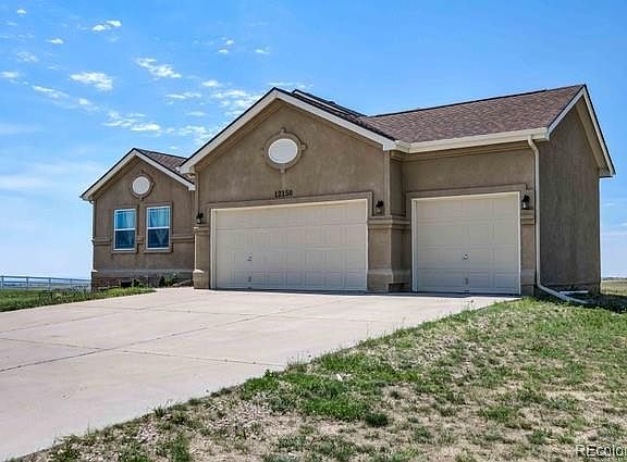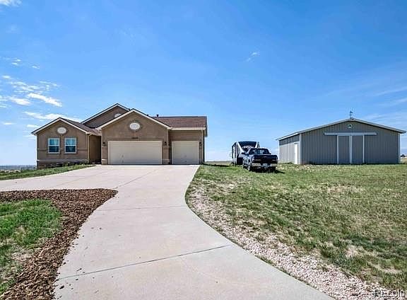 Welcome to this spacious and bright Rancher home on the edge of Black Forest with amazing Front Range views! Situated on 2.5 acres, this large stucco home features 9' ceilings throughout the main floor, tons of natural light and gorgeous hardwood floors in the open concept great room, and granite kitchen countertops. The large master bedroom sports its own 5-piece master ensuite with dual vanities and walk-in closet. Downstairs the fully finished basement - with brand new vinyl plank flooring and paint in the great room - is bathed in sunlight and offers prairie views from the many garden-level windows and provides an ideal spot for entertaining, including a complete wet bar and pre-wiring for surround sound. The basement also offers two additional bedrooms and a third bathroom for even more living space. The attached pergola-covered deck out back is perfect for enjoying the warm weather and unobstructed mountain views with family and friends around the included fire pit. Brand new window shades and treatments throughout all remain with the house. And if you need extra space beyond the large 3-car garage, it is readily available in the detached 24' x 30' workshop/garage. Your home on the range awaits!