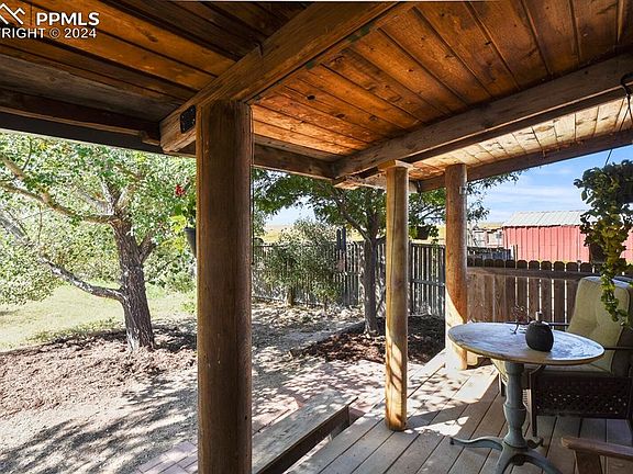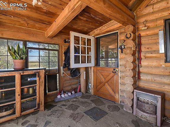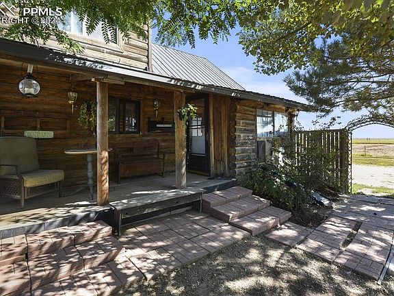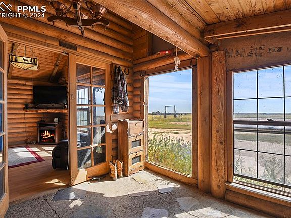 Escape to your very own log cabin nestled on nearly 40 prairie acres, offering mountain views. This charming 1.5-story cabin invites you to relax on its covered porch, surrounded by a tree-filled yard, providing a serene retreat from the day's heat. Or, start your day with a cup of coffee while enjoying the sunrise from the comfort of your couch. Upstairs, the master bedroom and bath offer a rocky mountain view on clear day. Upon entry, you'll find either a sunroom or mudroom, depending on your preference, leading seamlessly into the east-facing living room connected to the kitchen. The vast land provides ample space for your animals and recreational equipment. A 3-stall barn with electric, feed and tack room awaits to shelter your horses, accompanied by a nearby chicken coop. Additionally, a 1200-square-foot shop with a loft and office space is ready to accommodate your vehicles and toys, complete with a wood-burning stove for chilly days. An additional building/well house can serve as a guest cottage, studio, or additional storage area. For equestrian enthusiasts, a 100'x200' arena offers ample space, while divided pastures ensure grazing. The property is fully fenced and subdivided, offering freedom and flexibility without the constraints of any HOA or covenants. Seize the opportunity to own this peaceful cabin retreat away from the city's hustle and bustle.