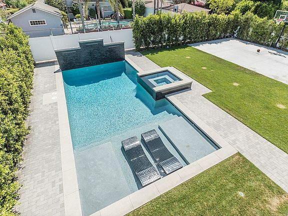 Enter this 2017-built estate to explore a magnificent craftsmanship reminiscent of a Hew Hamptons Farmhouse. A chef's kitchen features a walk-in & a butlers pantry, a large island w/ a breakfast booth, 2 sinks, 2 refrigerators & a 60" stove. The great room opens up to a HUGE backyard thru Fleetwood pocket doors for a seamless indoor/outdoor experience. Complimented w/ wood floors, a home office, a theatre, & a grand living room, this estate is suited for everyday comfort & luxury as well as entertaining large gatherings of family & friends. Features such as 3 car garage, elevator, smart home & solar panels complete this owner-designed home. Enjoy a master suite w/ a fireplace, sitting room, walk-in closet, stunning bath, & a large balcony overlooking the backyard. The magnificent backyard features a basketball half court, pool & spa w/ Baja shelf & waterfalls, 3 fire-pits & endless lawn. Excellent location w/ EZ access to Hollywood & Downtown, minutes from upcoming NoHo West Project.