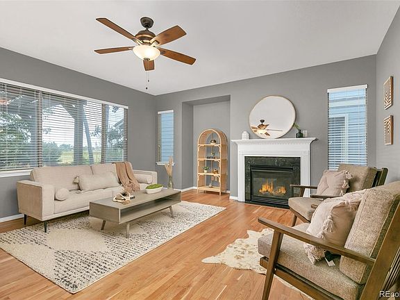 This absolutely gorgeous 3Bed/3Bath home shines like new! The adorable front porch welcomes you right inside. Once inside you will be in awe of this meticulously maintained home offering a wonderful open floorplan flowing with natural light, custom interior paint, and gorgeous hardwood floors. The open concept leads you from the living room into the dining room and kitchen. The eat-in kitchen showcases a large pantry, a wonderful island for additional storage and prep space, plus beautiful views of the professionally landscaped backyard. The charming living room has oversized windows as well as a cozy fireplace. But that’s not all, there is also a half bath as well as the mudroom, laundry room, and a large flex space on the main floor perfect for a home office, or formal dining room, or can be converted into a 4th bedroom if desired. Upstairs will greet you with brand new carpet, a large loft, plus a custom storage space, and all 3 bedrooms. The stunning private primary bedroom features custom paint, and beautiful views overlooking the open space as well as a 5-piece bath with double sinks, a soaking tub, a shower, and an oversized walk-in closet. The unfinished basement and the 2-car garage offer tons of extra storage space/ flex space options such as a home gym or workshop. The magnificent yard offers so much private space for BBQs and fall fire pit evenings. In your spare time enjoy the new state-of-the-art Bison Ridge Recreation Center, and golfing at the Buffalo Run Golf Course. This home is perfect in every way and ready for you to move right in. With easy access to E470, I-25, and Denver International Airport you are also within easy reach of downtown Denver. Come take a look, you won't be disappointed.