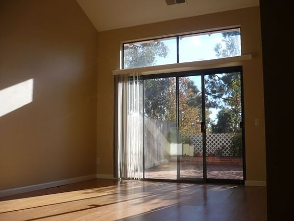 Please text 858-395-4959 for showing 3 bedrooms, 2.5 bath + loft. AVAILABLE NOW Located on the southerly edge of the complex. This charming corner unit feels like a detach home. Property includes wood floor, wood kitchen cabinets, and kitchen appliances, washer and dryer. The loft addition can be used as storage, office or a play room. The back patio is south facing and have light coming through all day and a great view! 2 car -garage attached to the unit and permit street parking available. Community comes with pool and tennis court Owner pays trash and water. Tenant responsible for gas, electric, cable and landscaping