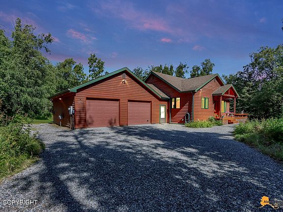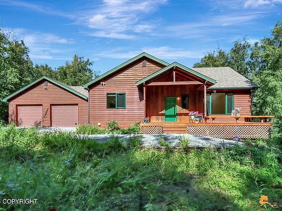 Custom, meticulously clean and maintained Alaskan home on 1.98 acres. Magical back yard setting with gorgeous cedar decking and firepit area. Yard is dotted with a variety of perennials, well-established ferns and even a zip line! Abundant entertaining possibilities outdoors with incredibly cared for cedar decking both in front and back. Beautiful cedar siding exterior. Huge windows throughoutthat were special ordered to allow lots of natural light in. Tastefully updated kitchen featuring quartz countertops, breakfast nook and custom soft-close hickory cabinets. Plentiful parking and very private. Come home to this gem. Close to the fair, downtown Palmer, the highway, shopping, and medical care. This home has it all! Come check it out, won't last long!