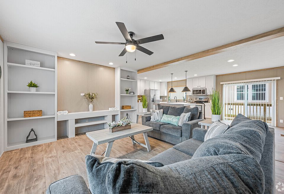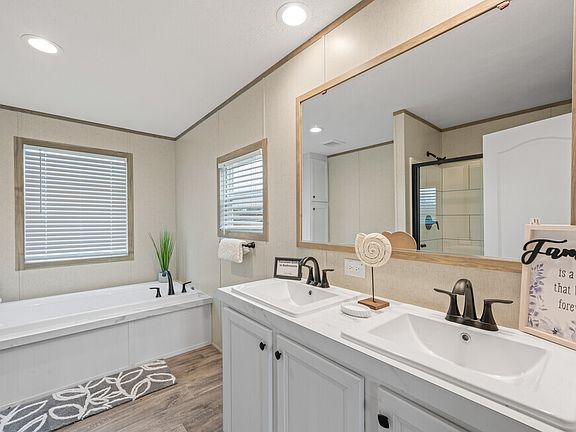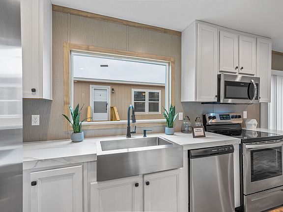 Clayton Real Deal Built with the latest in smart energy features. This three-bedroom, two-bath home has large, expansive open space. Featuring a designer's dream kitchen, a gathering island fit for all your culinary adventures. 42 Inch Cabinet System and large gathering family island, Duracraft 3/4 Shaker Style Cabinet Doors Stainless Steel Refer, 30-inch Electric Range - Farmhouse Sink, Dishwasher - Stainless Steel, plus large dining room area and recessed can lighting throughout adds to the modern feel. The primary bedroom includes a spacious walk-in closet and an on-suite private bathroom. Large walk-in closet, Deck Tub in Primary Bath, Fiberglass Shower with Glass Doors Energy Smart Ecobee Programmable Thermostat, LED Bulbs, 40 Gallon Electric Water Heater, Carrier Electric Furnace (Down Flow) Plus, the private yard features an 8×10 storage shed nestled in the backyard. If you need extra storage or a space for your hobbies, this shed has got you covered. And to top it off, a concrete driveway ensures you'll never have to worry about parking again. Financing is offered through First Choice MH LLC, a licensed mortgage loan originator in the State of Texas. Main office 600 W. 22nd Street Suite 101 Oak Brook, IL 60523. NMLS# 1241272. Equal Housing Lender. Estimated monthly payment based on the price of $105,036 10.44 APR, $3999 Down, 360 payments of $1,698. Site rent, insurance, or local site taxes are included. All conditions are subject to credit approval and appr