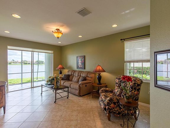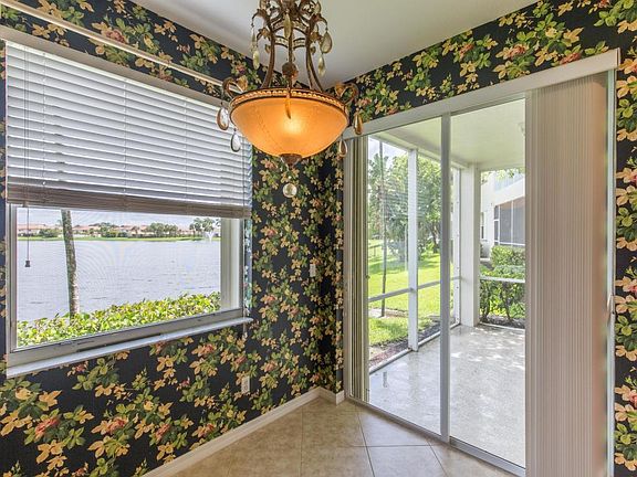 Looking for that breathtaking Lake Wellington view? Look no further!! This professionally decorated one story carriage home offers everything you will need to live in paradise. Masterfully planned, this layout optimizes your 3 bedroom and 2 bathroom space with an oversized one car garage plus a separate storage area. The sizable eat in kitchen with stunning views offers 42'' wood cabinets & granite counters. Neutral tile throughout main living areas with beautiful hard wood floors in all bedrooms. Impact glass on front windows with accordion shutters on others. Relax and enjoy the tranquil water views from your large great room or your very own screened patio. Convenient location in the heart of Wellington. Walking distance to City Hall, Wellington Amphitheater, Aquatic Center, and Polo!