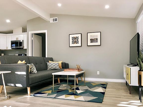 Single family house (4 bedrooms and 3 full baths) has been completely renovated in 2019 with a modern design. Master bedroom is huge with over 350 sqft and a walk-in closet. Open concept kitchen/living rooms with quartz island ready for entertainment. All brand new appliances installed throughout the house, plus central A/C. Brand new bathrooms with porcelain tiles, rain shower, and glass sliding door. Backyard with patio covers, avocado and orange trees. Plenty of spaces on the driveway and street for parking. House can be rented furnished with comfortable beds/mattresses, sleeper sofa, kitchenware, washer/dryer, three Smart LED TV's, etc. 30 days, furnished or unfurnished. Price negotiable base on terms.