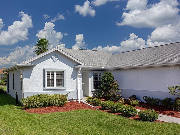 ALL NEW!!, new fls., granite counters, sinks, toliets, paint, shower door, appliances and landscaping. When buying a home, be sure to consider our low HOA fee of just $111.00 per month as residents are thrilled with all the amenities and home styles for such a reasonable fee. This is a golf cart community with access to shopping, medical, restaurants, fitness, and 4 pools, of which one is an indoor lap pool. Residents love the easy commute to The Villages, Airports, Disney, East and West coast. Choose this SYCAMORE MODEL, on a BEAUTIFUL LOT, with park like view. Ext. home was recently painted,(2018) replaced the HVAC, also, a newer refrigerator, and has a home warranty ...