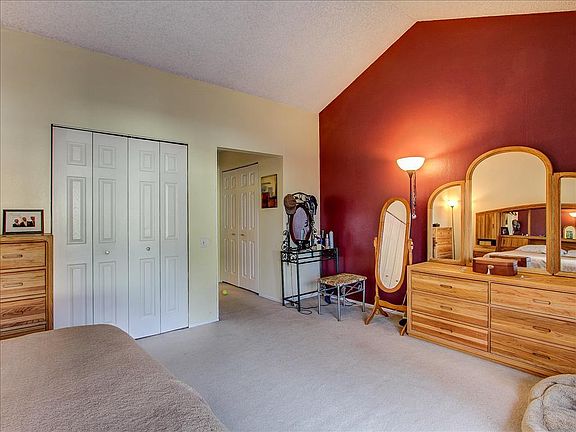 Spacious elevated living room has vaulted ceilings, cozy fireplace and tiled dining area. The bright kitchen has tile flooring, maple cabinets, quartz counter tops and island, stainless steel appliances, and a sliding door to the balcony. The main floor master has a private bath and sliding door to the lower deck and back yard with a gated retreat and fenced dog run. There are two bedrooms on the lower level, and the finished basement has an additional non-conforming bedroom and a large laundry room.