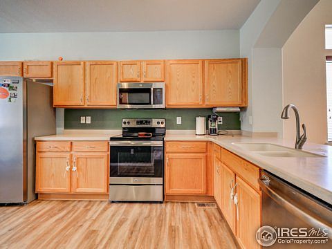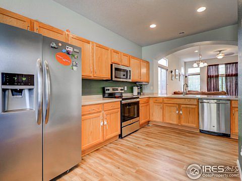 Beautiful ranch style home open floorplan 3 beds 2 baths 3468 sq ft w/ beautiful eat-in kitchen, pull outs in cabinets, Corian counters, hardwood floors, all Stainless Steel appliances are included, formal dining, open high ceiling family room & surround sound wired. Spacious master suite, 5pc bath & walk-in closet. Certified roof. Lovely backyard w/ concrete patio. Full size unfinished bsmt, central A/C, humidifier equipped. Minutes away from grocery, stores, school, trail, I76 & more!