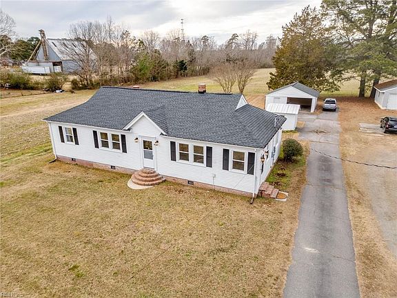 This lovely home offers all the charm of yesteryear with lovely modern updates! Gorgeous original hardwood flooring throughout, and solid wood doors and trim! Three spacious bedrooms. Primary suite features an attached office or nursery (or 4th bedroom), quaint Pinterest inspired bathroom, and double closets. This magnificent kitchen looks like it stepped right out of a designer magazine spread. Newer roof, windows and HVAC. New water heater. Full appliance package including washer/dryer. Situated on nearly 1/2 acre, the property includes a huge detached garage with a separate workshop, plus a storage shed. Located just down the road from the Jamestown Ferry (no charge 24/7), there is easy access to Williamsburg/Jamestown, or just a 20 minute drive to Historic Smithfield!
