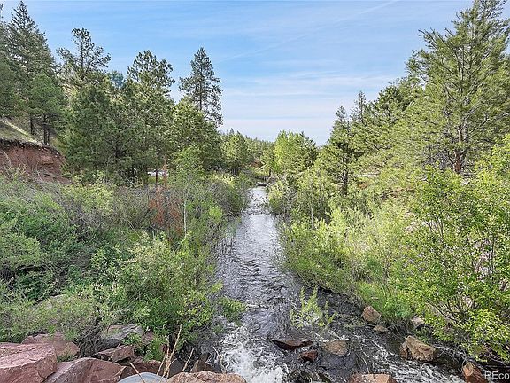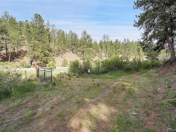 Escape to this secluded, 25.58-acre wooded retreat. A waterfront area perfect for camping, fishing, or splashing around greets you along the front stretch of the property. To the right of the gated entrance is an oasis spacious enough to accommodate at least two large RVs. Follow the driveway to the left, which leads to the cabin and additional potential build sites. Perched atop the highest peak is a rustic, beautifully restored, fully-furnished cabin. This cozy sanctuary features two bedrooms: one with a custom queen bed with built-in storage, the other with a twin over full bunk bed. The living room offers additional sleeping space with a queen sofa bed and upgraded foam mattress. A playful loft, accessible by a rope ladder, houses a full-size futon mattress. The kitchen is equipped with all necessary appliances, including a fridge/freezer, oven, stove with ventilation hood, and microwave. This cabin comes equipped with a 50-gallon fresh water tank, a tankless water heater for warm showers, and an incinerating toilet (No holding tank). If desired, you may have a well drilled and add a septic system. As you explore the property, you'll discover two creeks onsite—West Creek and Camp Creek—that lead into the famous Platte River, ideal for gold medal fly fishing or river tubing. The property backs to Pike National Forest, offering private trails that lead miles into the wilderness for peaceful hikes, ATVs, or hunting adventures. The property is just five miles from Decker's corner, a quick 17-minute drive from Woodland Park, 40 minutes from Colorado Springs, and about an hour from Denver. Zoned A-1, this property expands your options beyond your basic residential use. No HOA.