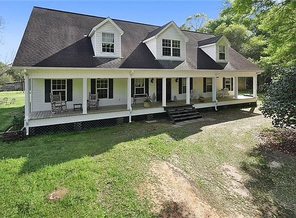 Beautiful Acadian home on secluded acreage, bring the horses! Lots of room for family and friends 6 bedroom, 4.5 bath, bonus room used as a playroom or great for a home theatre, Heart of Pine flooring, open floor plan. Mother in law suite with separate entrance and two bedrooms(included in total count). Formal living room and additional sunken den, Barn with workshop and stalls for the horses and tack area. Pool, Cinder block building on property perfect to refinish as guest quarters or guest home.
