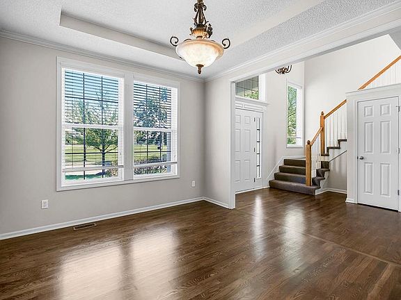 Welcome home to this stunning 2-story, 5-bedroom, 3.5-bath residence, perfectly situated just a short distance to Ravenwood Elementary School in the Olathe School District. Step inside and be greeted by gorgeous hardwood floors throughout the main level. The inviting living room features a cozy fireplace with brand new stone, ideal for relaxing evenings. Entertain guests in the formal dining room or enjoy the spacious finished basement, perfect for a rec room or home theater. The primary suite boasts a large walk-in closet and en-suite bath. Step outside to a beautiful deck in the backyard, perfect for outdoor dining and gatherings.