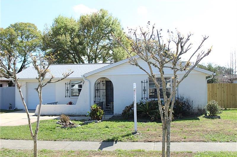 Beautiful 3 bedroom, 1 bath, 1 car garage home located minutes from the Suncoast Expressway. Brand new Air Conditioner in 2018 and in 2016 new roof and gutters. The kitchen has newer white cabinets, white appliances and a nice size eat in area. The home has a nice size living room when you walk into the home, plus a separate family room off the kitchen. Both rooms plus all the bedrooms have newer laminate wood floors. The bathroom has been updated with a new white vanity and a refinished tub. The home has a large privacy fenced back yard. The garage is attached to the home and includes the washer and dryer. . Located in Shadow Ridge and no HOA fees. Minutes from shopping and a convenient commute to anywhere in Tampa Bay