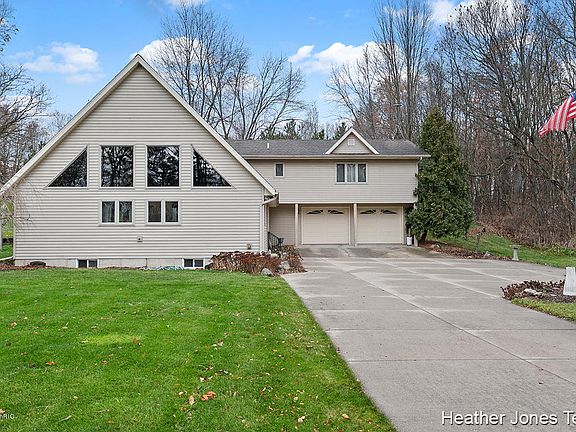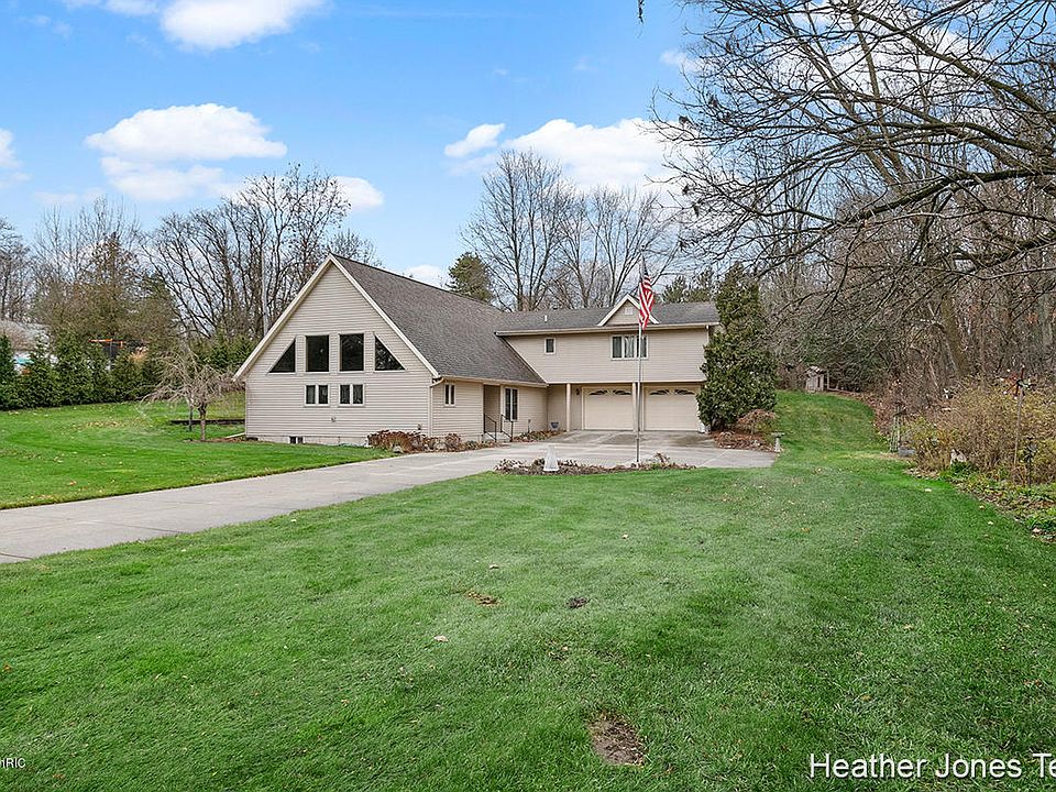 Welcome to 12157 14 Mile Road. This unique and meticulously maintained house may be the home you have been waiting for. The main level offers a large and open living, dining, and kitchen space- you will love the cathedral ceilings and fireplace! You will also find 1 main floor bedroom and full bathroom, a flex room that could be a great second living space, as well as a large laundry space featuring a half bathroom. Upper level, you will find a neat loft area, 2 large bedrooms, as well as a potential 3rd and 4th bedroom with minor adjustments, and a sunroom overlooking the park-like backyard. The unfinished basement allows plenty of space for storage or potential hobby rooms! Nestled back on 11.6 acres, located just west of Greenville, the location and setting is convenient and serene!