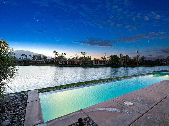 This modern and amazing house sits on one of the finest and most spectacular 1/2 acre lot views in Mission Hills CC situated in the Estates section, with south west and dramatic lake views in front - the ultimate location. Holden and Johnson architecture, built by Stoker Construction. Control 4 installed two months ago. Freshly painted. 3 bedrooms, 3,5 bathrooms, office, den, gorgeous large great room with a dominant fireplace dividing the dining room and living and bar area. Each room boasts these incredible and amazing views. Electric blinds throughout. Solar lease is $393.00 per month, with 15 years left on the lease, Roof was redone 10 years ago. This one will not disappoint. Three car garage. Close to Palm Springs, all the best Country Clubs in Rancho Mirage, and a 15 minute drive to the airport. Taking Back Up offers as this is contingent upon sale.