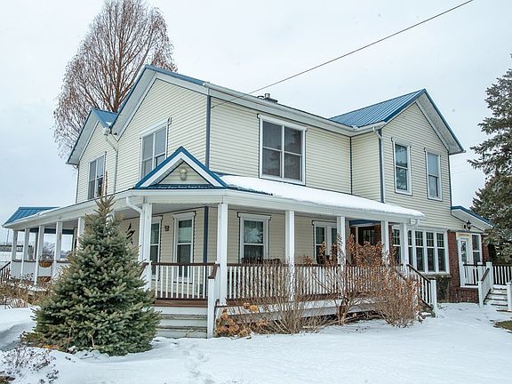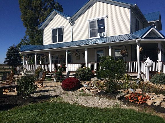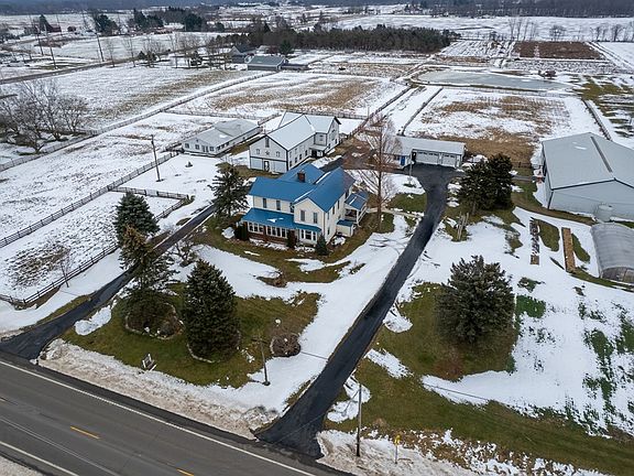 MOTIVATED SELLER! Beautifully remodeled farmhouse on 10 acres with multiple outbuildings/barns. 1st floor features master bedroom with full bath and laundry. 4 large bedrooms and 2 full baths on 2nd floor. Cathedral ceilings in one upstairs bedroom. Den off of living room full of natural light perfect for office. Outdoors relax on the covered porch or on the patio complete with built-in pizza oven. Outbuildings include 104' x 60' horse arena, hoop house with built-in irrigation system, 3-car garage, workshop, and horse stall, barn approximately 80' x 43', and old milk house approx. 70'x32' currently housing pig, pheasants, chickens, rabbits. Also a pond, gardens full of lavender, strawberries, blueberries, grape vines, black raspberry plants, and orchard with multiple fruit trees.