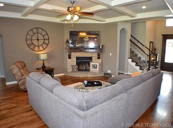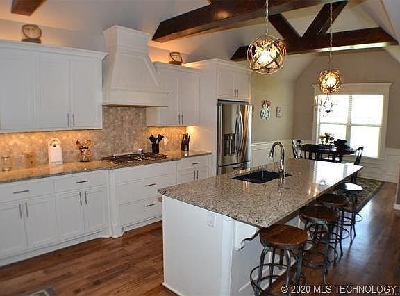 DESIGNER SHOWCASE HOME! IMMACULATE! Custom Beams through out, Open Floor Plan, Living Room w/Fireplace open to Kitchen, Kitchen w/Stainless Steel Appliances and large Granite Island great for entertaining, Master Down w/Extra Large Shower, Office/Study downstairs, 2 Bedrooms Upstairs w/Full Bathroom, Professional Landscaping, Sprinkler System, Bixby Schools.