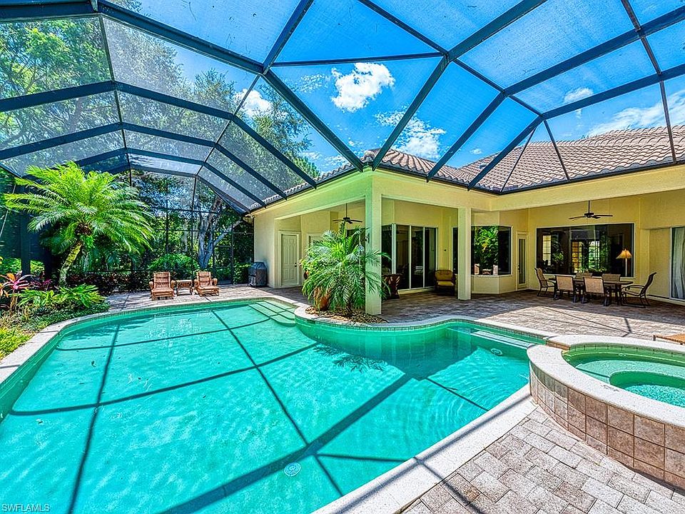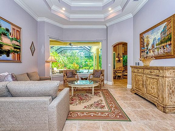 Ideally situated within Colliers Reserve, on a classically over-sized lot of .68 acres, with lushly landscaped tropical foliage allowing for maximal privacy with the wooded, creek-side setting to the north. This lovingly cared for home boasts a NEW ROOF 2016 and A/C August 2019. Offering formal and informal living and dining, a great room (showcasing a pyramid hip-ceiling) opening into the kitchen with handsome cabinetry, tumbled marble back-splash, granite counters and custom eyebrow archway over the gas stovetop. Other exemplar finishes include triple tray ceilings and crown molding throughout, mitered glass windows in the Living and Breakfast room as well as the Master Shower, plantation shutters, chair rail molding, and enduring arch top three-panel doors. The established community of Colliers Reserve offers Golf, Tennis, Pickleball, Fitness Center, Lap pool, dining options, as well as kayak and paddle boarding on the Cocohatchee River, with access to the Gulf of Mexico. The Country Club provides year-round family events and an active social calendar. During school vacation, residents take advantage of onsite camps and full-filled activities for children and grandchildren.