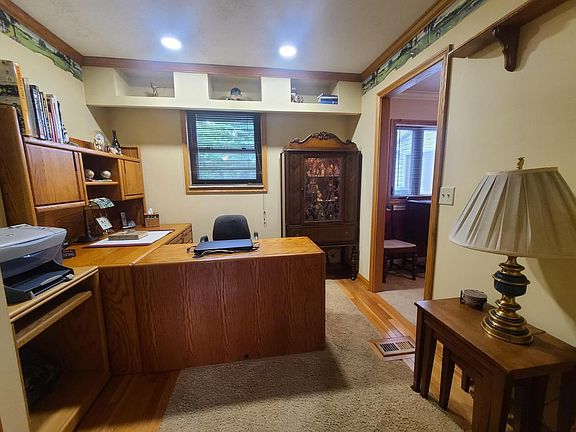 - Crown Molding, Natural Woodwork, Ceiling Fan(s)