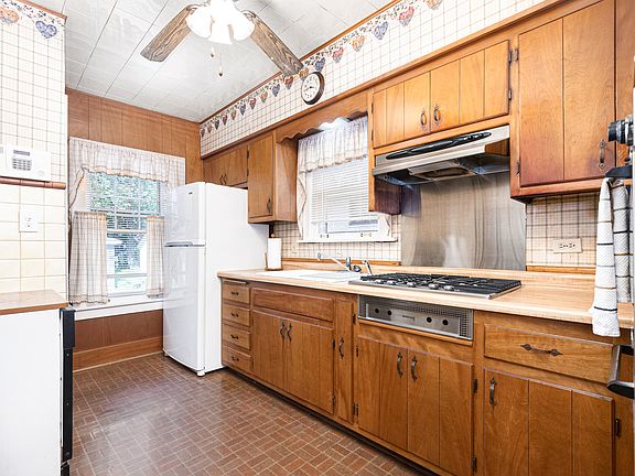 MOTIVATED SELLER!! A must see! Solid home owned by the same family for nearly 100 years. Main level bedroom and additional 3-4 bedrooms upstairs. Main level Family room with wood burning fireplace & formal dining room area. Large Enclosed Cedar Front Porch. Real Hardwood Floors throughout. Main level full bathroom recently updated. Finished Cedar Basement with large family room, bathroom & laundry room. Separate Entrance to home offers potential for related living. Upstairs has hook-ups for additional kitchen/washer-dryer. Ceiling fans throughout. Spacious 2 car detached garage & Yard is 3/4 fenced. ADT home security system.