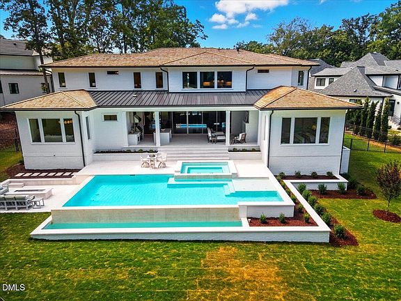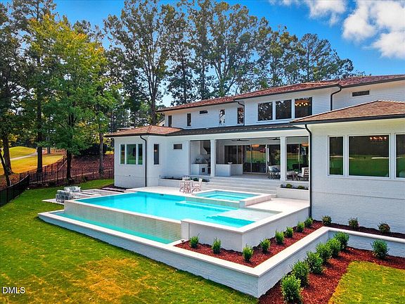 2025 PARADE OF HOMES - A stunning showcase of timeless elegance and modern luxury, this French Country estate by Raleigh Custom Homes is set in the prestigious North Ridge community of North Raleigh. Overlooking the scenic North Ridge Country Club golf course at the 17th green. This masterpiece in nestled in a quiet cul-du-sac on 0.63 acres and offers over 7,000 square feet of meticulously crafted living space. With 5 spacious bedrooms, 7 lavish bathrooms (including a steam shower), and a 3-car garage, every detail has been designed to blend classic charm with contemporary sophistication. Built for both grand entertaining and everyday comfort, the open-concept floor plan is bathed in natural light, featuring elegant architectural details and high-end finishes. The state-of-the-art kitchen is complemented by a massive scullery, fully equipped with a second dishwasher and beverage refrigerator for seamless prep and storage. The first-floor owner's suite provides a luxurious retreat with a spa-like bath and custom walk-in closet, while a guest suite and dedicated study add both convenience and versatility. Exceptional amenities set this home apart, including a sprawling rec room with a wet bar, a private card room, and a golf simulator room for year-round enjoyment. Fitness enthusiasts will love the dedicated exercise room with a separate sauna for ultimate relaxation. Step outside to your own private oasis, featuring a resort-style custom pool with retractable cover and integrated spa, creating the perfect setting for leisure and entertaining. With North Ridge Country Club just a short walk away, world-class golf and a vibrant community lifestyle are right at your doorstep. As a featured home in the 2025 Parade of Homes, this extraordinary French Country estate represents the pinnacle of luxury living in one of Raleigh's most sought-after neighborhoods.